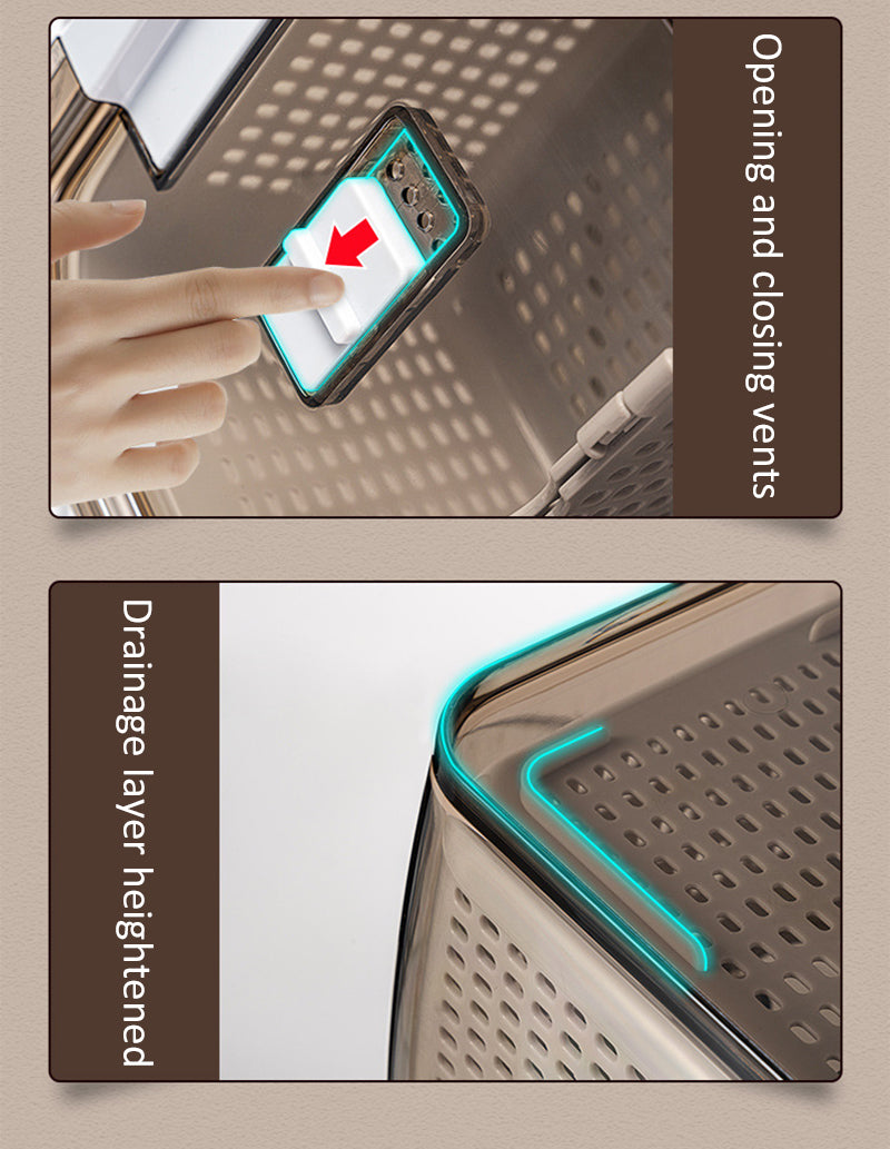 Separated Drain Structure: The inner basket lifts out easily, keeping produce elevated from excess water to reduce spoilage and maintain freshness.